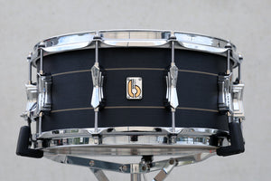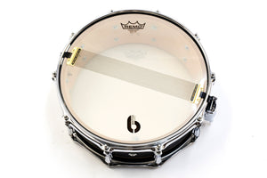 14” x 5.5”, 14” x 6.5” • Remo USA heads • 2.3 mm triple flange hoops • 45º bearing edges • 20ply, 10.5mm thick Maple and Birch shell • Palladium lugs • Gold logo badge • Palladium strainer • Brass snare wires